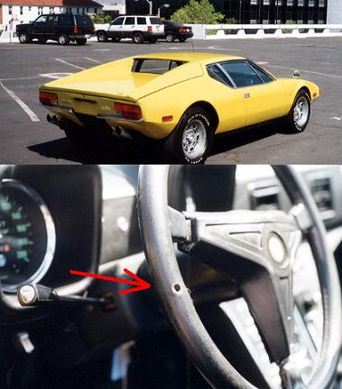 Another time, Elvis fired his .45 caliber handgun AT his Canary Yellow Pantera sportscar. See photos below.
